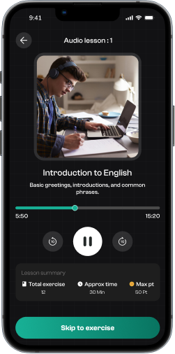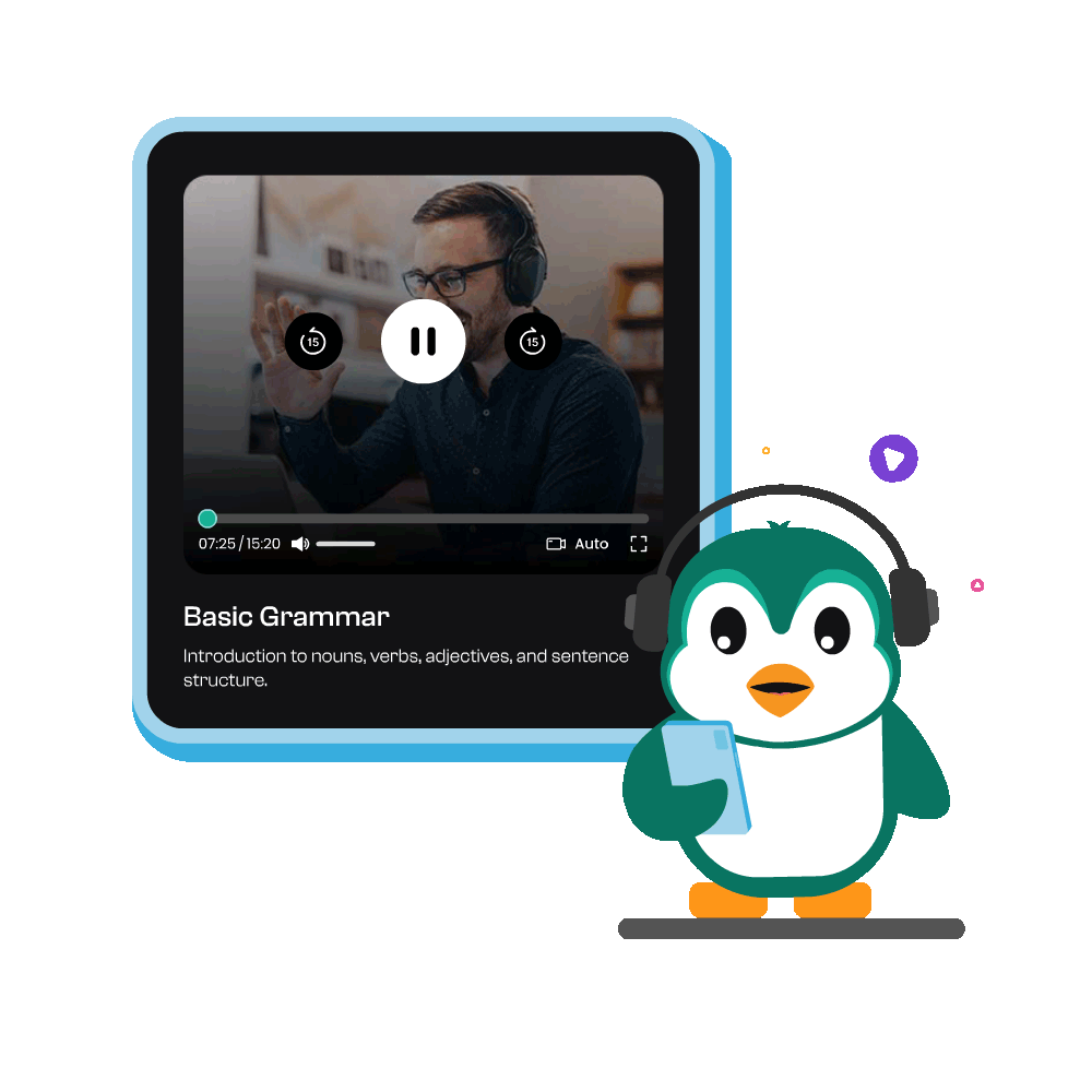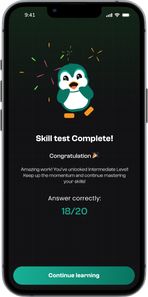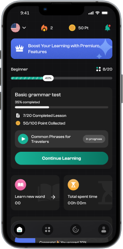 Avalie suas habilidades linguísticas com nossos testes rápidos e direcionados. Essas avaliações abrangem gramática, vocabulário e compreensão. Passe para desbloquear cursos avançados, acessar materiais mais complexos e acelerar seu caminho para a fluência.